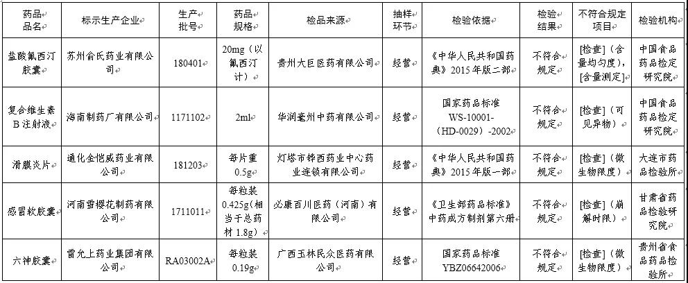 经贵州省食品药品检验所检验,标示为雷允上药业集团有限公司生产的1批次六神胶囊不符合规定,不符合规定项目为微生物限度。