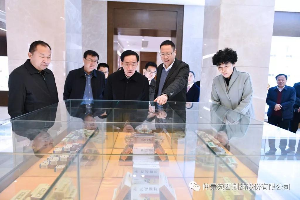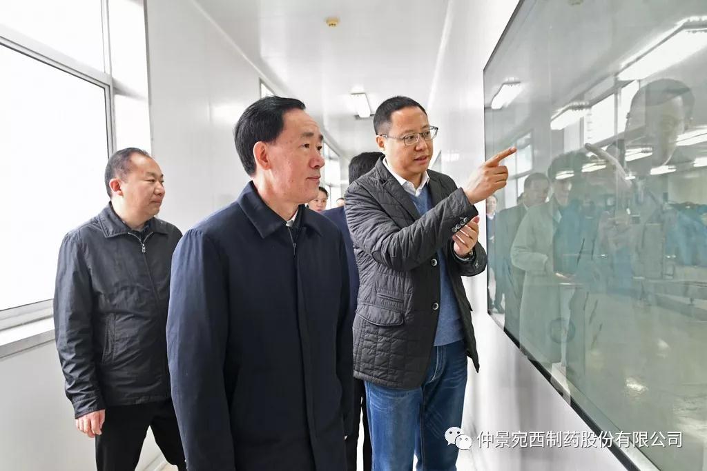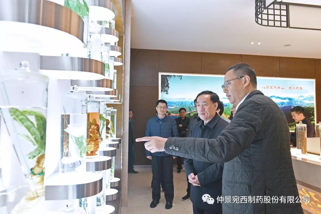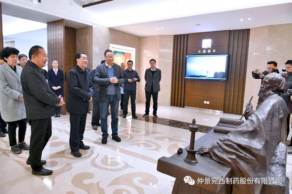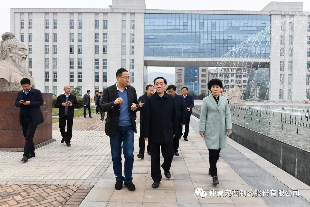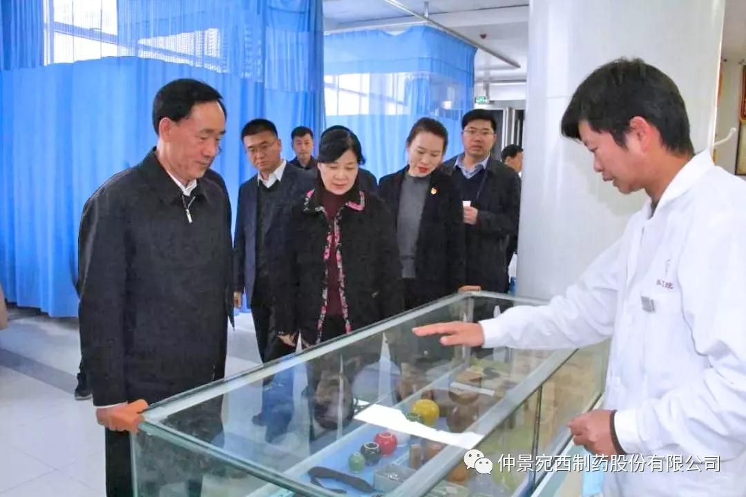 11月23日,河南省副省长戴柏华莅临医圣故里仲景宛西制药、南阳张仲景医院等地,调研中医药发展工作,并对中医药产业发展进行座谈。省政府副秘书长黄东升、南阳市政府副市长阿颖等陪同调研。戴柏华一行先后来到仲景文化展厅、仲景文化广场、配方颗粒项目生产线、企业40年发展图片展、浓缩六味地黄丸生产线、医圣山广场、南阳张仲景医院等地实地察看。戴柏华一行每到一处,都详细地询问了解企业关于品牌文化建设、项目建设、精准扶贫、大健康产业布局等情况。仲景宛西制药董事长兼总经理孙锋汇报企业工作。