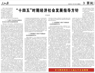 • 《“十四五”时期经济社会发展指导方针》(李克强)