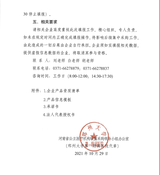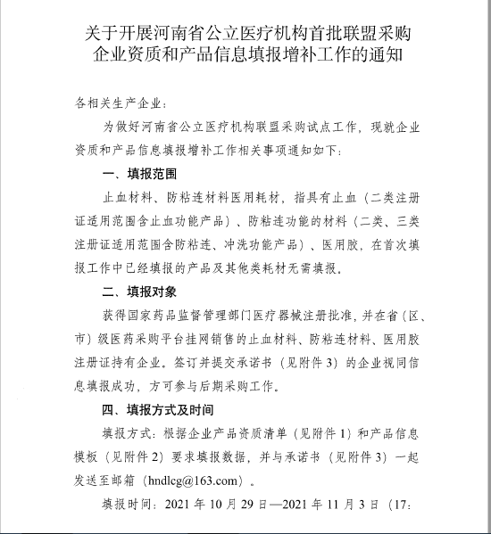 关于开展河南省公立医疗机构首批联盟采购企业资质和产品信息填报增补工作的通知