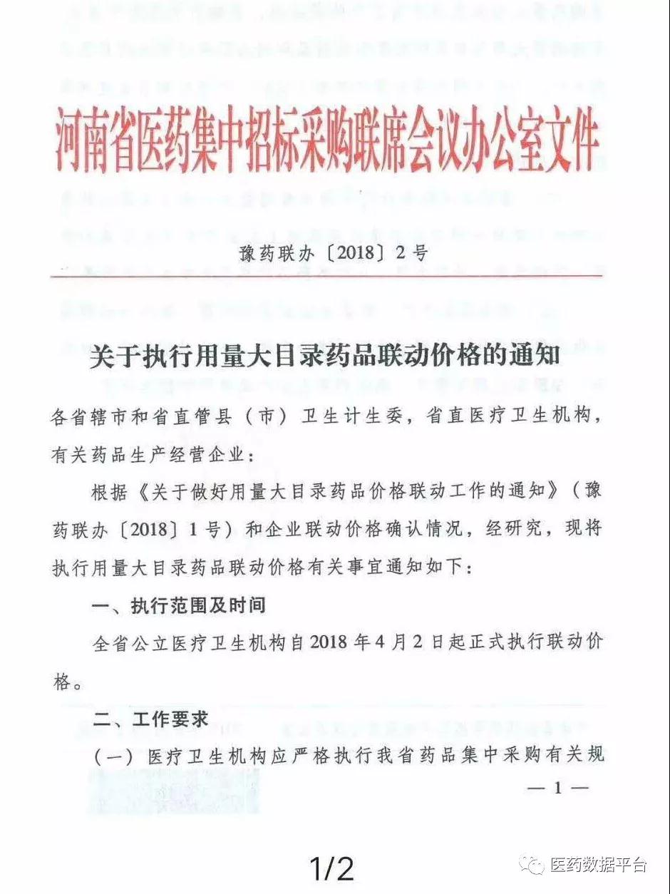 河南省用量大目录联动价格执行时间确定了