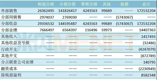 注:所列为占营收或营业利润10%以上行业、产品