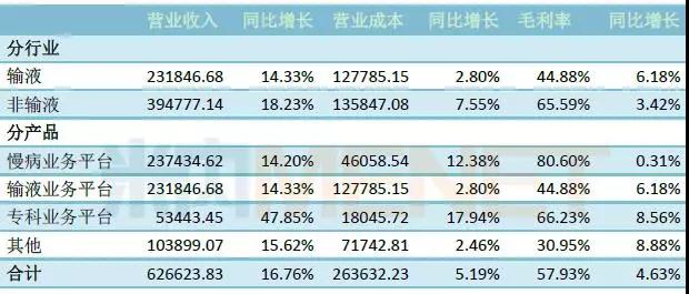 输液业务收入重拾双位数增长,增幅达14%;基础输液扭转2016年下滑趋势,2017年销量实现小幅增长,包材结构调整再突破,全年软包装销量增长9%,占比较2016年末提升4%,其中BFS从品牌宣传进入销售应战阶段,收入实现24%增长,为公司新增亿元级别产品,直软输液快速导入市场,收入同比增长33%。