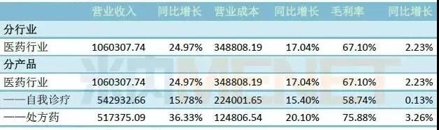 华润三九2017年实现营业收入111.20亿元,同比增长23.81%,其中,自我诊疗业务营业收入54.29亿元,同比增长15.78%;处方药业务营业收入51.74亿元,同比增长36.33%。净利润13.02亿元,同比增长8.67%。