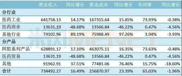2017年,东阿阿胶实现营业收入73.72亿元,同比增长16.70%;净利润20.44亿元,同比增长10.36%。