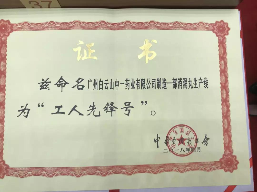 4月28日,2018年广东省庆祝五一国际劳动节暨劳模表彰大会隆重举行,全国和省"五一"劳动奖状、奖章、工人先锋号获奖集体和个人代表接受了颁奖,白云山中一药业消渴丸生产线荣获"全国工人先锋号"殊荣,并上台接受省委领导的颁奖授牌。此次获奖体现了国家对于消渴丸取得的成绩的高度认可,其中离不开消渴丸生产线对消渴丸生产精益求精的“工匠精神”,将消渴丸塑造成口服降糖药标杆。