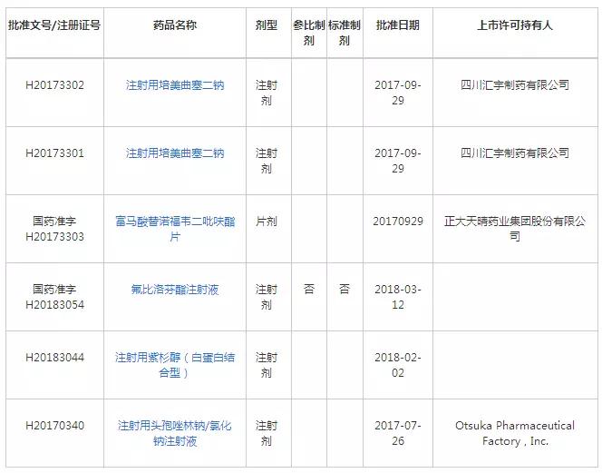 除了正大天晴的替诺福韦二吡呋酯片外,还包括四川汇宇注射用培美曲塞、武汉大安制药氟比洛芬酯注射液、石药集团注射用紫杉醇(白蛋白结合型)、大冢制药注射用头孢唑林钠/氯化钠注射液这4个注射剂品种已经可以使用“通过一致性评价”标识了。