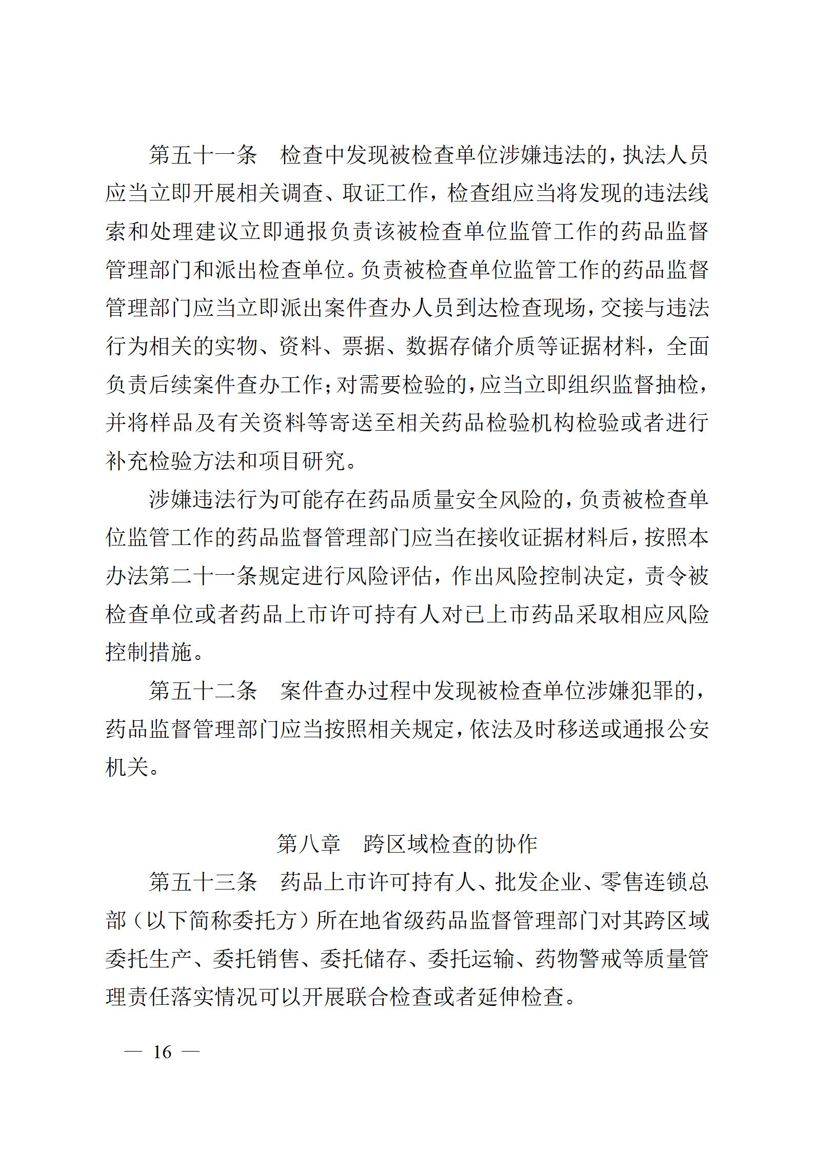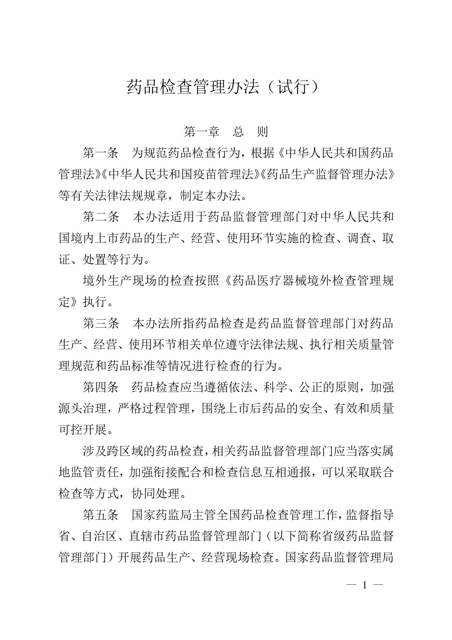为贯彻《药品管理法》《疫苗管理法》,进一步规范药品检查行为,推动药品监管工作尽快适应新形势,国家药监局组织制定了《药品检查管理办法(试行)》(以下简称《办法》),现予印发。现将有关事宜通知如下: