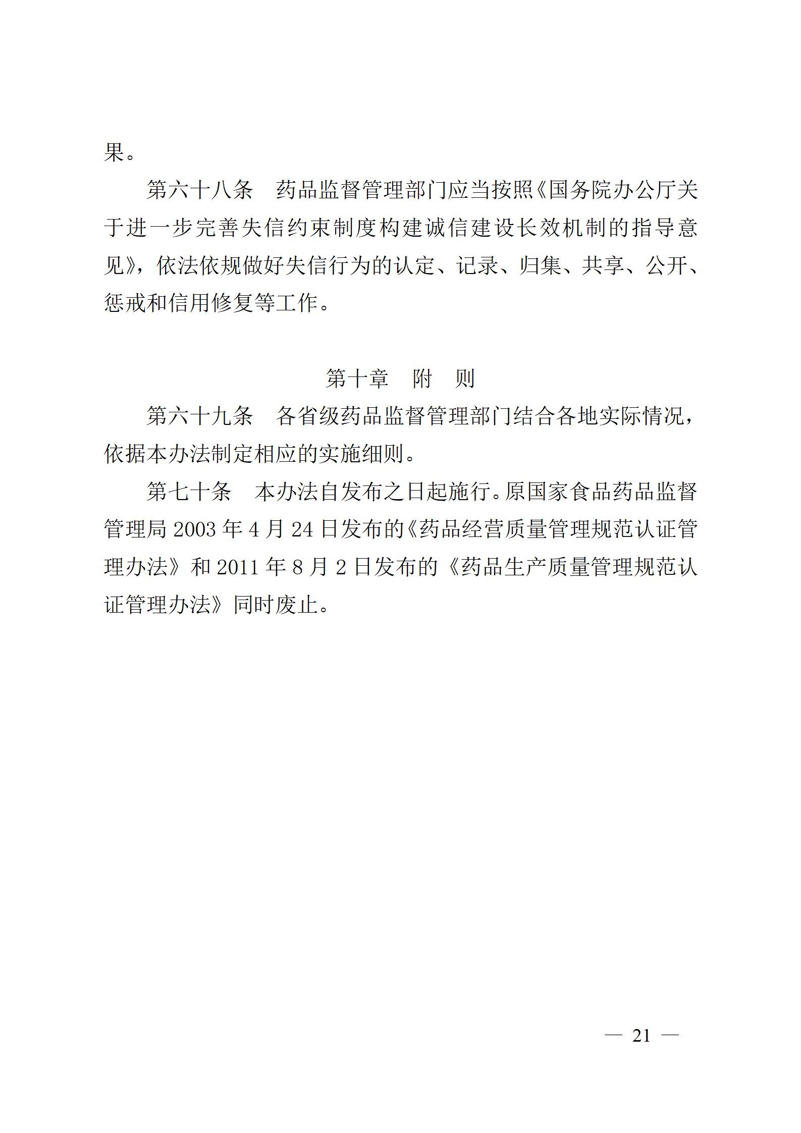 四、本《办法》自发布之日起施行。原国家食品药品监督管理局2003年4月24日发布的《药品经营质量管理规范认证管理办法》和2011年8月2日发布的《药品生产质量管理规范认证管理办法》同时废止。