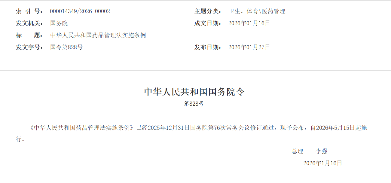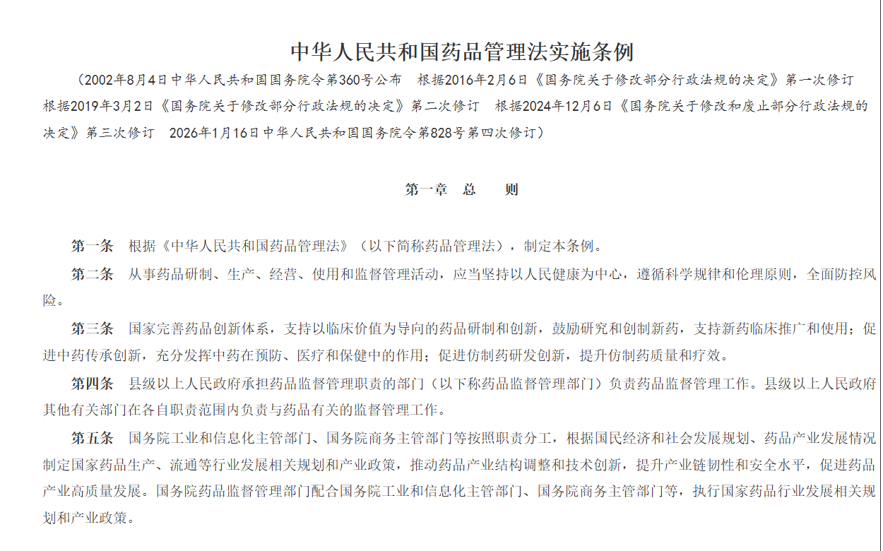 《中华人民共和国药品管理法实施条例》