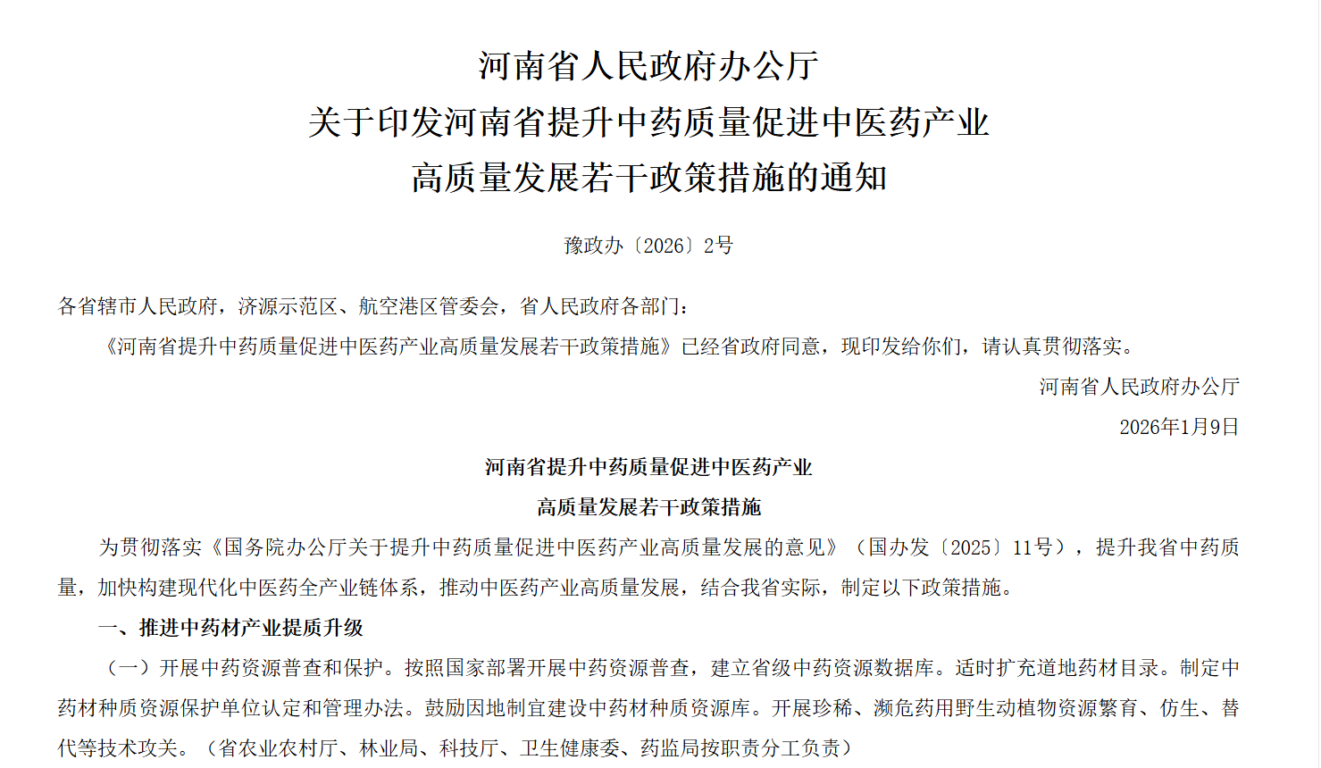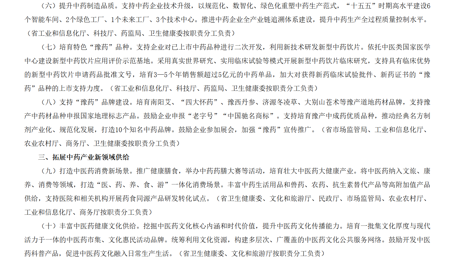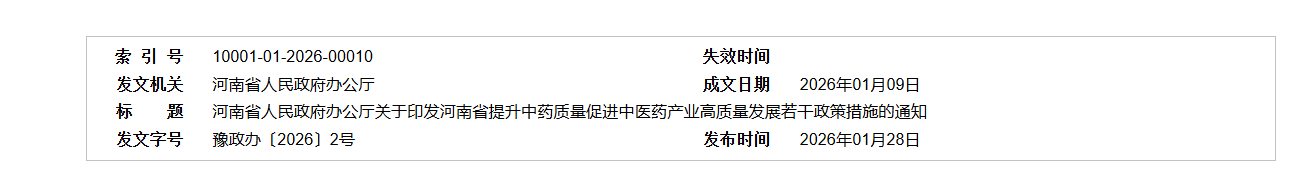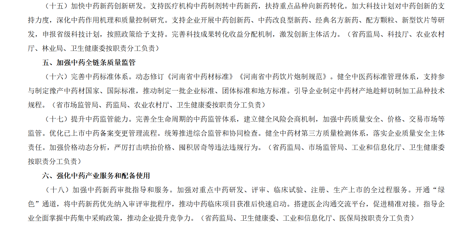河南省人民政府办公厅关于印发河南省提升中药质量促进中医药产业高质量发展若干政策措施的通知